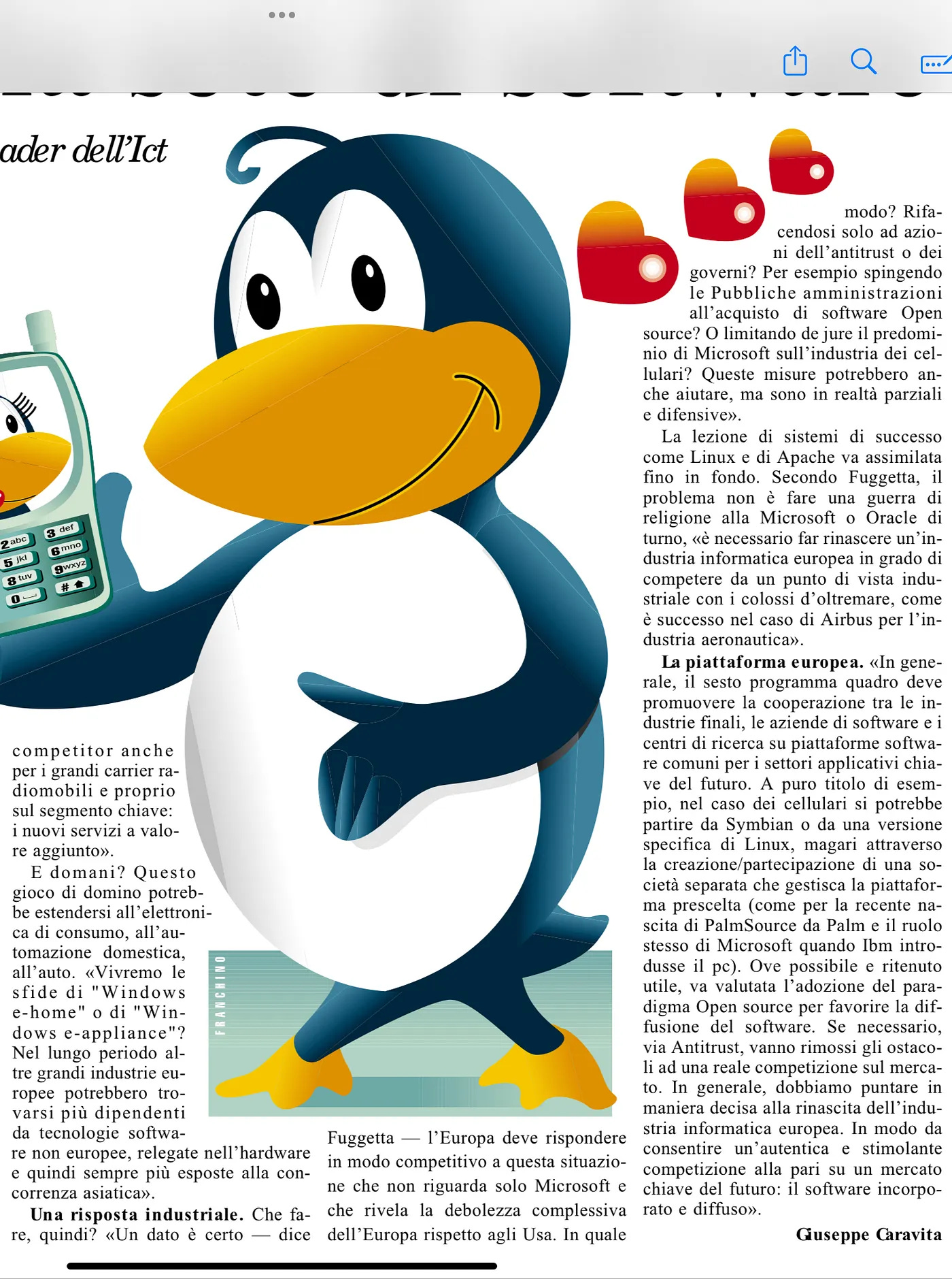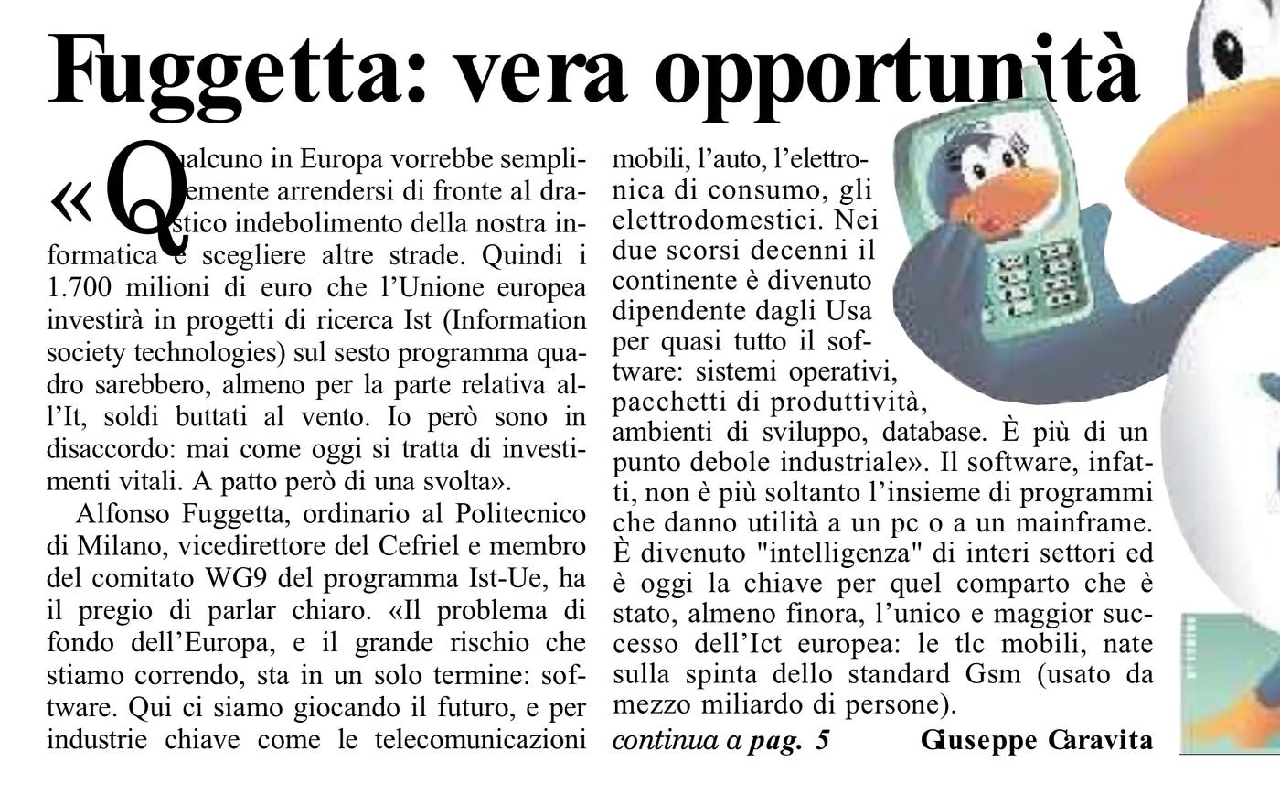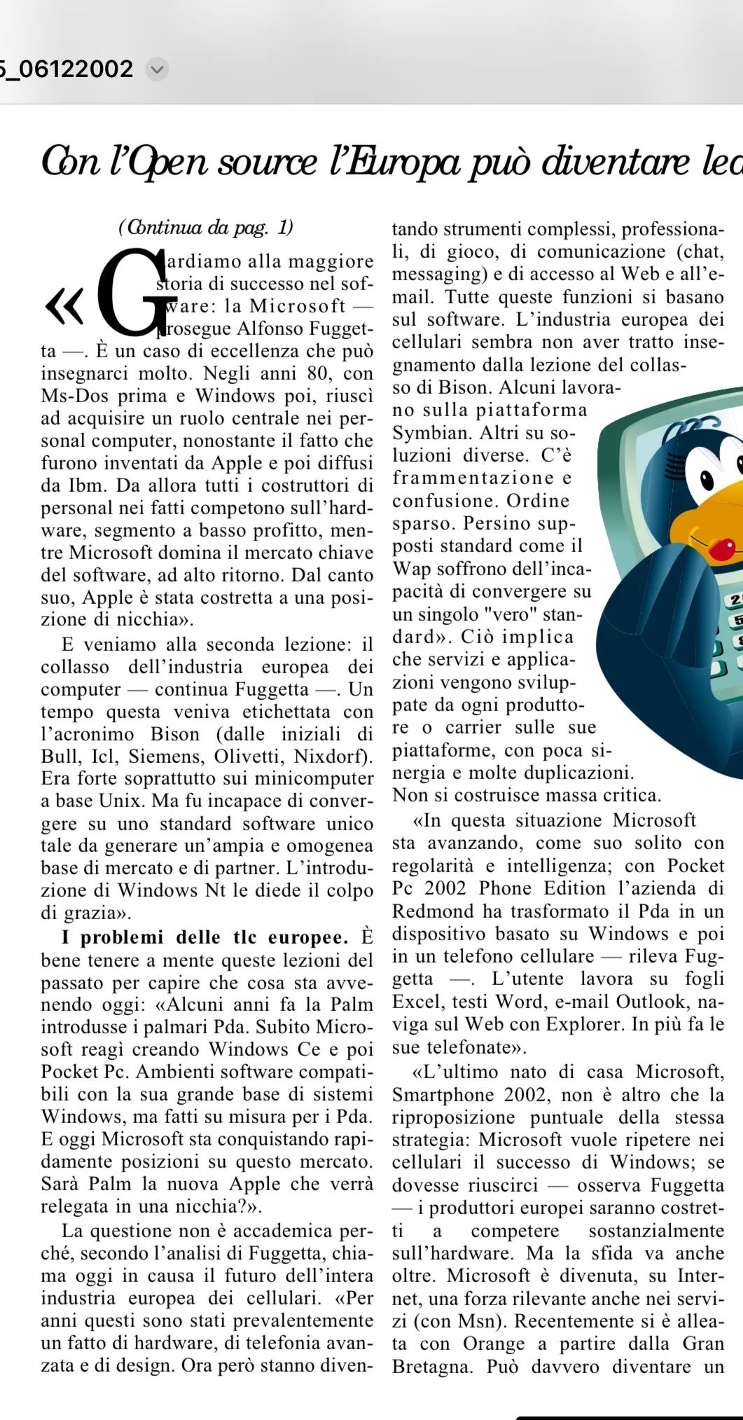 L’amico Enrico Pagliarini mi ha fatto un regalo immenso. Ha recuperato l’originale di un articolo del 2002 di Beppe Caravita che mi intervistava sui temi del software e del bisogno di sviluppare piattaforme europee per il mobile e per ciò che allora non si chiamava ancora IoT.